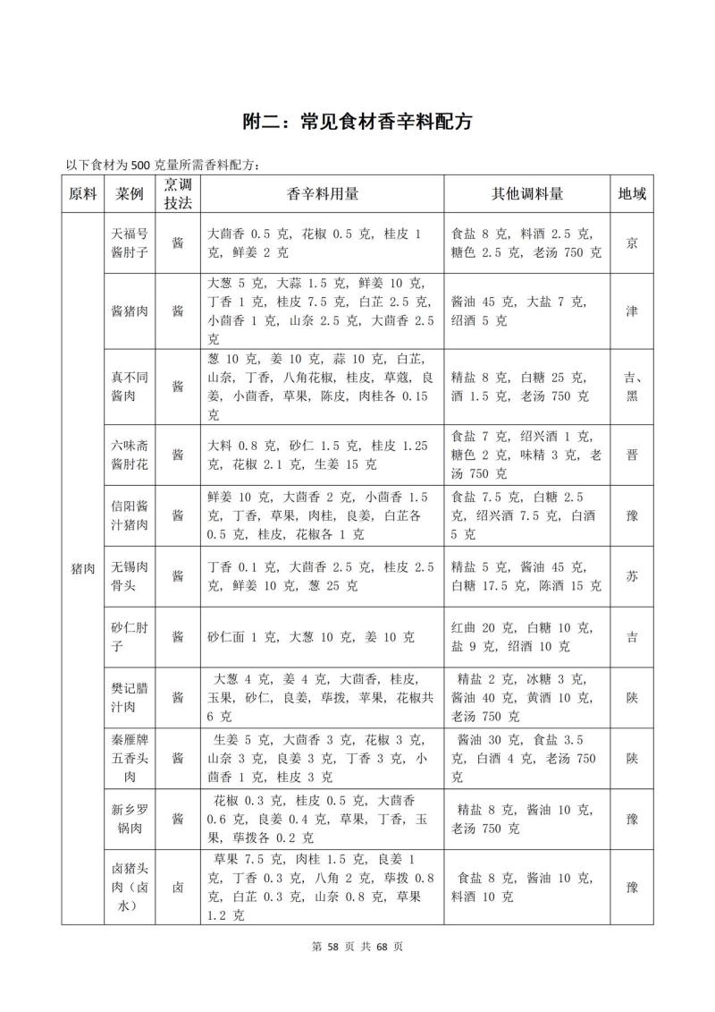 附二:常见食材香辛料配方